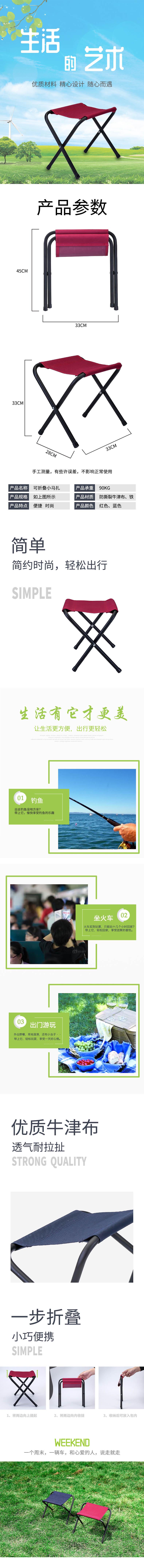 產(chǎn)品名稱:休閑折疊凳 產(chǎn)品規(guī)格:33*28*45cm 產(chǎn)品材質(zhì):牛津布+鐵管 產(chǎn)品顏色:凳面顏···